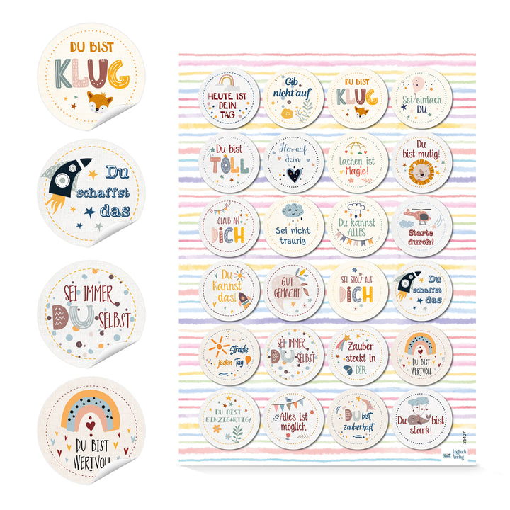 Motivationsaufkleber Kinder 24 Stück runde Affirmations-Sticker mit positiven Sprüchen für Schule, 4 cm, für Lehrer & Eltern