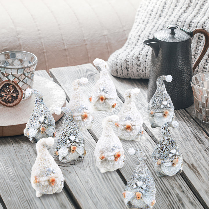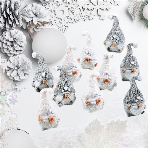 10 Mini Wichtel Figuren 4 cm - Weihnachtswichtel grau weiß glitzernd