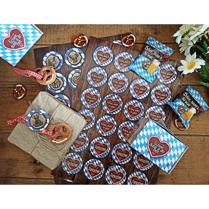 - Lustige typisch bayrische Sticker zum Verschönern von Geschenktüten, Grußkarten, Einladungskarten, Dankeskarten, Tischkarten basteln - als Geschenkaufkleber.