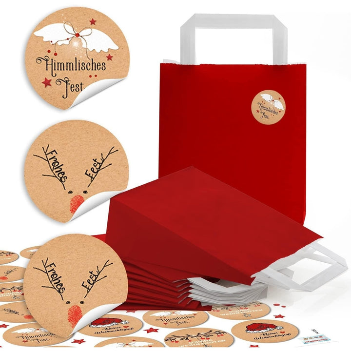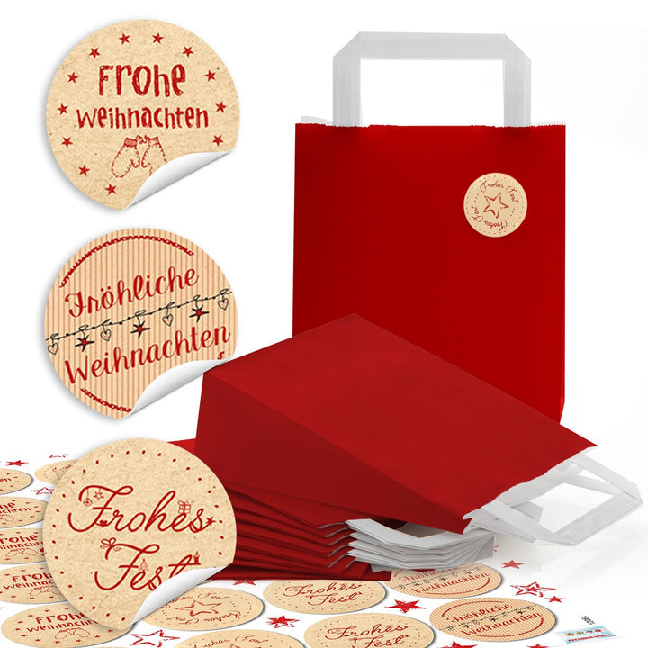 Rote Weihnachtstüten aus Papier mit Henkel 18 x 8 x 22 cm – mit Boden & runden Aufklebern