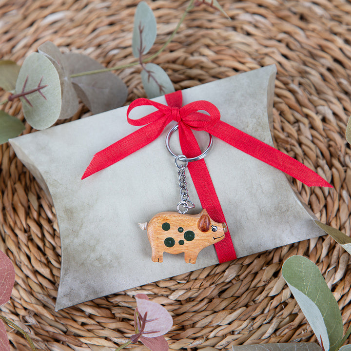 Hochwertige kleine braune Holz Glücksschweinchen Figuren Schlüsselanhänger mit ca. 4 cm - ohne Kette gemessen. Schwein Glücksschwein Gastgeschenk als give-away Mitgebsel für Kunden, Freunde, Gäste, Mitarbeiter, Kollegen, Kinder & Erwachsene - süße kleine Streudeko zu Silvester, Weihnachten, Geburtstag, Hochzeit, Kindergeburtstag, Neujahr, Party.