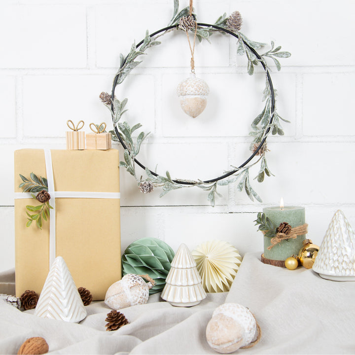 - Wunderschönes Weihnachtsdeko Set bestehend aus drei verschiedenen cremeweißen Weihnachtsbäumen aus Keramik. Stil: Hygge, Skandinavisch, Landhaus-Stil.