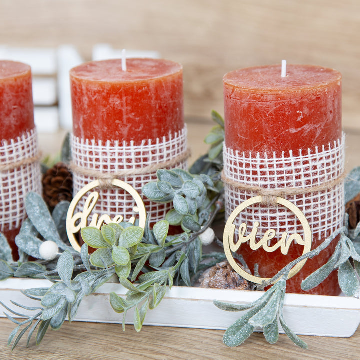 Adventskranz Zahlen aus Holz Gold für Kerzen & Kerzenhalter Ø 5 cm