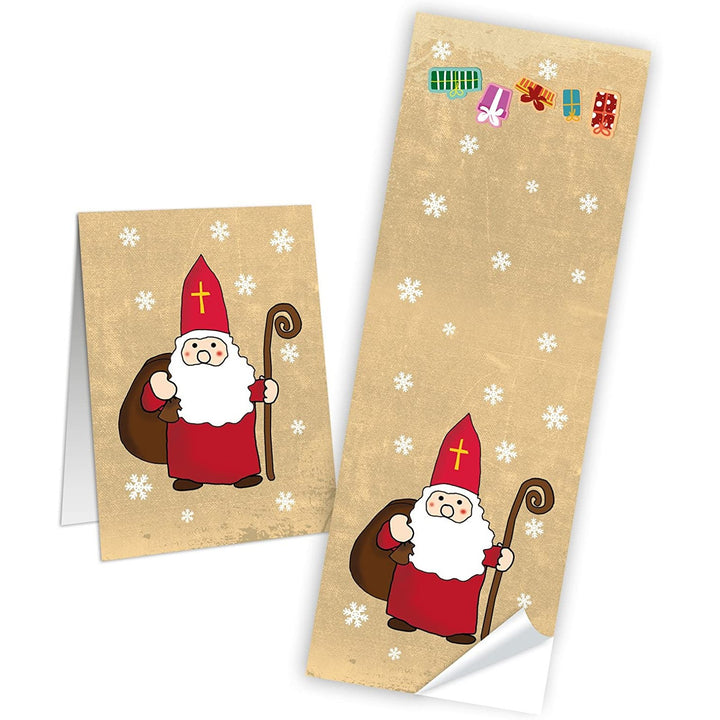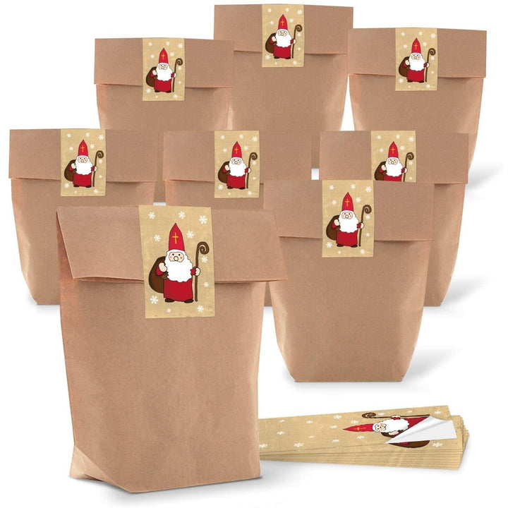 Braune große Tüten mit Boden 16,5 x 26 x 6,6 cm + Weihnachtsbanderolen "Nikolaus"