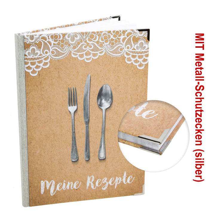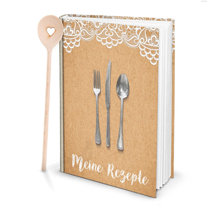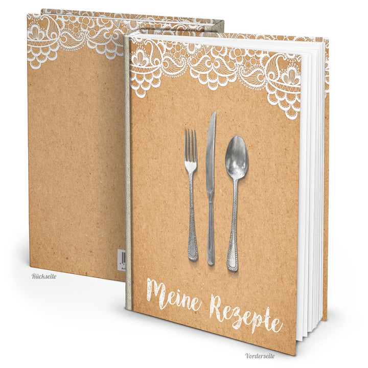 Rezeptbuch XXL DIN A4 „Mein Kochbuch“ – Vintage Shabby Look mit Spitze, 164 Seiten zum Selberschreiben