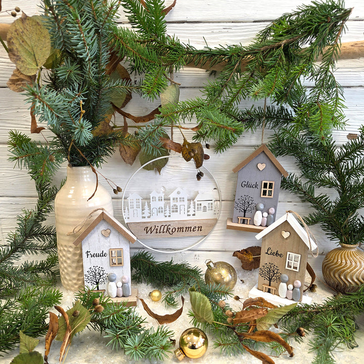 - WINTERLICHE STIMMUNG ZUM AUFHÄNGEN: Mit filigranen weißen Häusern und Tannenbäumen verziert – ideal zur Weihnachtszeit oder für hyggelige Winterdeko.